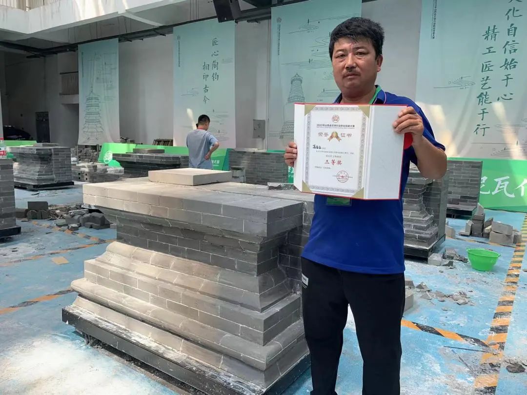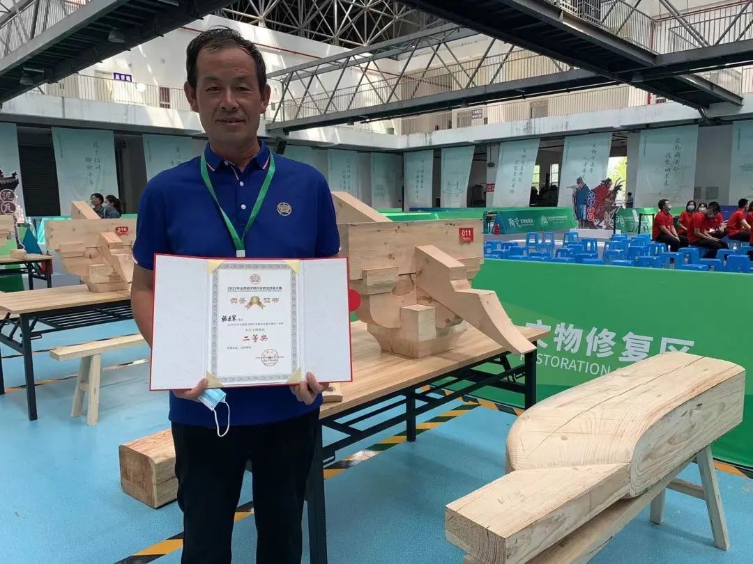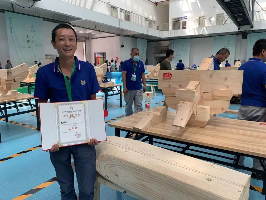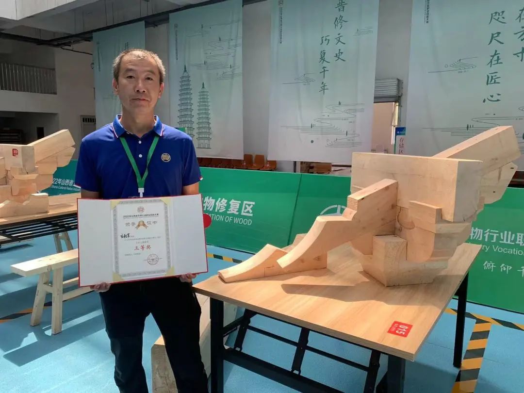 山西省古建筑集團在此次大賽中共派出7名參賽選手,其中4人參加木作組競賽,1人獲一等獎,1人獲二等獎,2人獲三等獎。3人參加瓦作組競賽,1人獲一等獎,1人獲二等獎,1人獲三等獎。